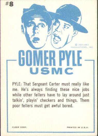 | |  Gomer Pyle, U.S.M.C. aired on CBS from September 25, 1964 to May 2, 1969, running for 5 seasons and 150 episodes. Gomer Pyle, played by Jim Nabors, was a spin off from his characters appearances on the Andy Griffith Show.