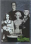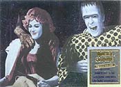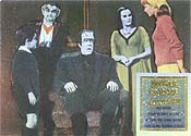 | |  Revisit television's funiest family of ghoulish monsters. See behind-the-scene photos, images from their TV show and 3 movies. This set consists of 90 cards printed on 20 pt. mirror board for that haunting effect, plus two chase card subsets consisting of 4 gold foil-stamped and 3 die-cut cards randomly inserted in packages. Production limited to 600 cases.