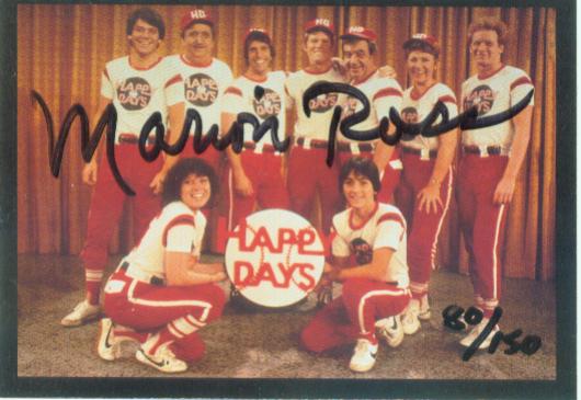| | -auto-MarionRoss.jpg) Take one Fonz, a Richie Cunningham, and mix in all that was great about the 1950s, and what do you get? Happy Days! The #1 TV show of the 1970s premieres as a 72 collector card series, each printed on deluxe 24pt. stock. Relive 11 great seasons with nostalgic subsets including cast bios, where they are now, guest appearances, and more! Special chase cards include 6 rare "The Fonz" Chromium cards, autograph cards from Henry Winkler and Marion Ross cards, and a special surprise bonus in every case!