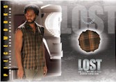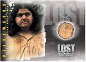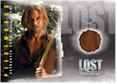 PIECEWORKS® CARDS - One per Box! Seven cards containing pieces of actual costumes worn on-screen during LOST (7 different cards - inserted approximately 1:36 packs). Shirt worn by Josh Holloway (Sawyer), Top worn by Emilie de Ravin (Claire), T-Shirt worn by Evangeline Lilly (Kate), Shirt worn by Matthew Fox (Jack), Shirt worn by Jorge Garcia (Hurley), T-Shirt worn by Cynthia Watros (Libby), Shirt worn by Harold Perrineau (Michael)