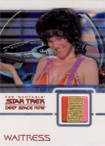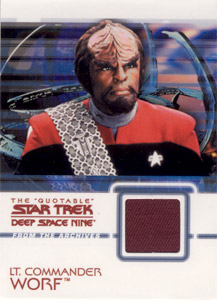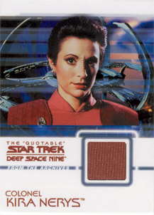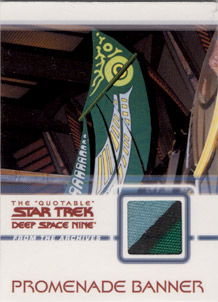 Rittenhouse Archives has also acquired authentic Star Trek: Deep Space Nine costumes to be used on over 20 different costume cards. Each staring cast member of the show is represented in this set. Also included will be two costume cards made from two different banners that hung on the Promenade set for all seven seasons!