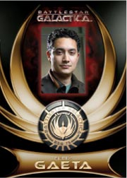 | 3 | Promo | | | 7 | Significant Seven analying the seven known humanoid cyclon models | 1:8 | | 21 | Autograph | 1:12 | | 9 | Love In War the tenuous relationships that war brings | 1:12 | | 12 | Costume | 1:24 | | 9 | Film Clip Gallery | 1:24 | | 3 | Shelter Poster advertising promotion art from the show | 1:144 | | 1 | Case Topper | 1:case | | 1 | Retailer Incentive 1 | 1:2case | | 1 | Retailer Incentive 2 | 1:6case |