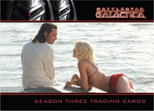 | |  Winner of the prestigious Peabody award for distinguished achievement in television, Battlestar Galactica continues to draw rave reviews from fans and critics alike. Relive the action, the drama, the struggles and the victories of this critically acclaimed show with Rittenhouse Archive's Battlestar Galactica Season Three trading cards. Each box will contain TWO autograph cards and one costume card as well as at least one 63-card set covering all 20 episodes from the third season.