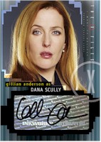 | |  The 72-card series will feature the franchise’s iconic lead characters Fox Mulder and Dana Scully, as well as the new film’s action and intrigue. This will be the first new “The X-Files” trading card product from Inkworks since the sold-out THE X-FILES: CONNECTIONS trading card set in 2005. In addition to the base set, collectors can also find several levels of randomly-inserted bonus cards including 9 Autographs (1:24) and 13 Pieceworks® (1:24), 9-card In Search Of foil puzzle (1:11), 6 foil Wanting To Believe (1:17), 3 Back To Basics (1:24), and 1 Out Of Darkness case loader (1:case). Retailer multi-case incentives include 2 puzzle Pieceworks® and a dual autograph card. Insert Cards| Qty | Name | Odds |