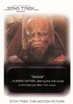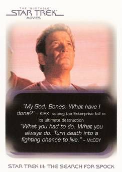 * 12 Star Trek Movie Stars In Motion (1:2 Packs) * 16 Star Trek Movie: Portrait Cards (1:8 Packs) * 10 The Quotable Star Trek Movies (1:12 Packs)