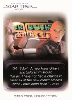 • Patrick Stewart as Captain "Jean-Luc Picard in "Star Trek Generations" • Kirstie Alley as Lt. Saavik in "STII: The Wrath of Khan" • James Cromwell as Zefram Cochrane in "STVIII: First Contact" • Christopher Plummer as General Chang in "STVI: The Undiscovered Country" • Nichelle Nichols as Lt. Uhura in "Star Trek: The Motion Picture" • Alice Krige as Borg Queen in "Star Trek: First Contact" • David Warner as Chancellor Gorkon in "STVI: The Undiscovered Country" • Majel Barrett as Dr. Christine Chapel in "Star Trek: The Motion Picture" • Marina Sirtis as Counselor Troi in "Star Trek: Nemesis" • Tim Russ as Enterprise-B Tactical Lieutenant in "Star Trek: Generations" • Laurence Luckinbill as Sybok in "Star Trek V: The Final Frontier" • Eric Steinberg as Paul Porter in "Star Trek: First Contact" • Ron Moore as (Writer) in "Star Trek Generations" • Nicholas Guest as Enterprise Trainee in "STII: The Wrath of Khan" • Rosana DeSoto as Azetbur in "STVI: The Undiscovered Country" • Robert Easton as Klingon Judge in "STVI: The Undiscovered Country" • Stephen Liska as Torg in "STIII:The Search For Spock" • Michael Welch as Artim in "Star Trek: Insurrection" • Don Stark as Nicky The Nose in "Star Trek: First Contact" • Barbara March as Lursa in "Star Trek: Generations" • Gwyneth Walsh as B'Etor in "Star Trek: Generations" • Stephanie Niznik as Perim in "Star Trek: Insurrection" • Jacqueline Kim as Ensign Demora Sulu in "Star Trek: Generations" • Alfre Woodard as Lily Sloane in "Star Trek: First Contact" • Roger Aaron Brown as Epsilon IX Technician in "Star Trek: The Motion Picture" • Jeremy Roberts as Lt. Cmdr. Dmitri Valtane in "STVI: The Undiscovered Country" • Thomas Kopache as Enterprise-B Communications Officer in "Star Trek: Generations"