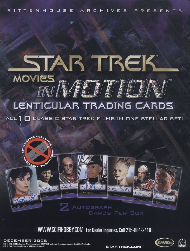 | |  The 60-card, all-lenticular base set will cover all 10 Star Trek Movies capturing your favorite scenes in breath-taking lenticular motion.