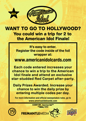 Randomly inserted autographs from Season 8 Finalists and past Idols including David Archuleta, Michael Johns and more!