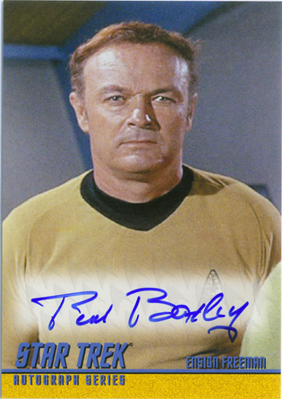 | |  Following up on 2007's and 2008's SOLD-OUT "Star Trek: The Original Series 40th Anniversary trading card" sets, comes 2009 Star Trek: The Original Series featuring all of the same unique designs and card-stock from our previous set, but focusing on the ground-breaking second third of the original series of Star Trek. Each box of this set will feature 3 Autograph Cards in the fan favorite classic design. Signers for this commemorative set include: