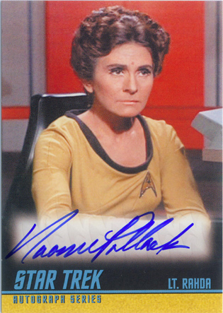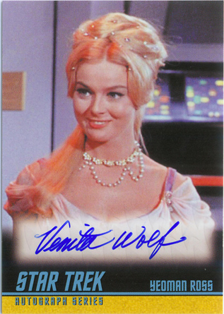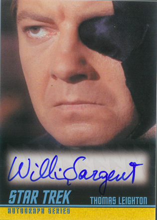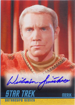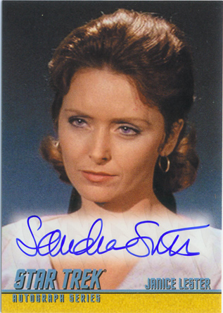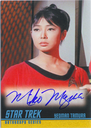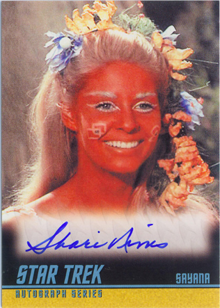 • William Shatner (Mirror Kirk) • Leonard Nimoy (Spock) • George Takei (Sulu in “The Naked Time”) • Sabrina Scharf (Miramanee in “The Paradise Syndrome”) • Skip Homeier (Dr. Sevrin in “The Way To Eden”) • Sheila Leighton (Luma in “Spock’s Brain”) • Roger Perry (Captain Christopher in “Tomorrow Is Yesterday”) • Sandra Smith (Janice Lester in “Turnabout Intruder”) • Shirley Bonne (Ruth in “Shore Leave”) • David Frankham (Larry Marvick in “Is There In Truth No Beauty?”) • Lezlie Dalton (Drea in “By Any Other Name”) • Barbara Babcock (Mea 3 in “A Taste of Armageddon”) • Elinor Donahue (Nancy Hedford in “Metamorphosis”) • William Wintersole (Abrom in “Patterns of Force”) • Susanne Wasson (Lethe in “Dagger of the Mind”) • Rex Holman (Morgan Earp in “Spectre of the Gun”) • many other first-time Star Trek: Original Series autograph card signers!
