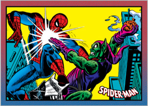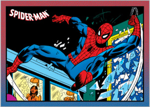 Bonus chase cards will include a 81-card parallel set (1:3), 9 "Rogues Gallery" lenticular motion cards featuring Spider-Man's dangerous foes (1:12), 9 "Allies" featuring all-new original painted art (1:8), and 9 "Swing-Into-Action" inserts featuring our friendly neighborhood Spider-Man(1:24).