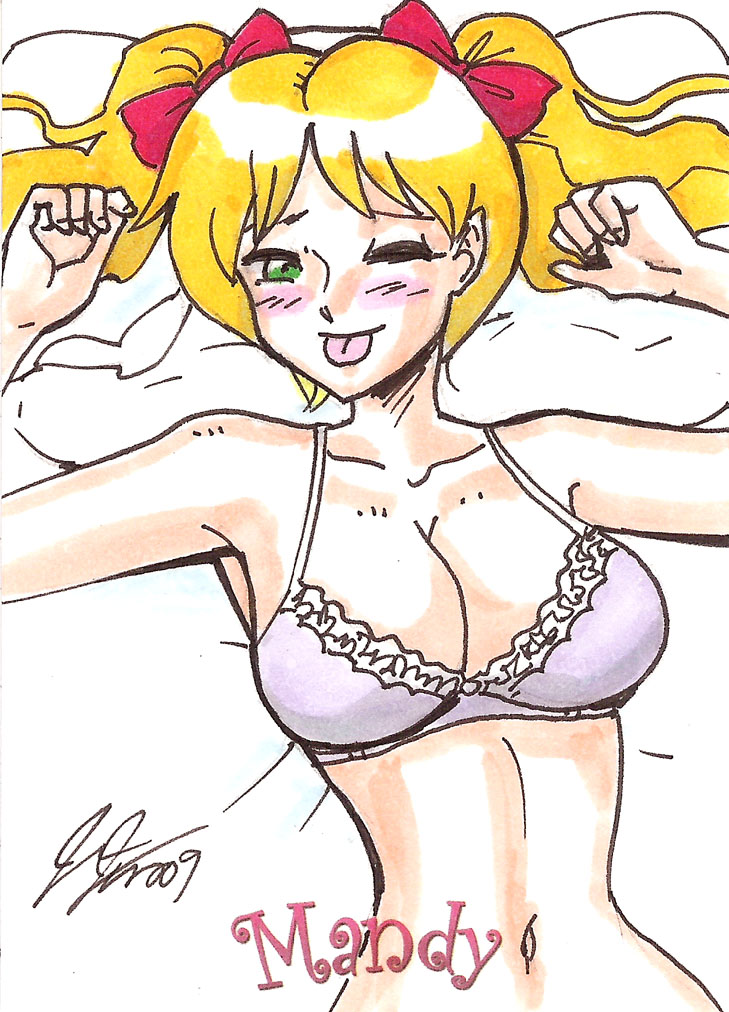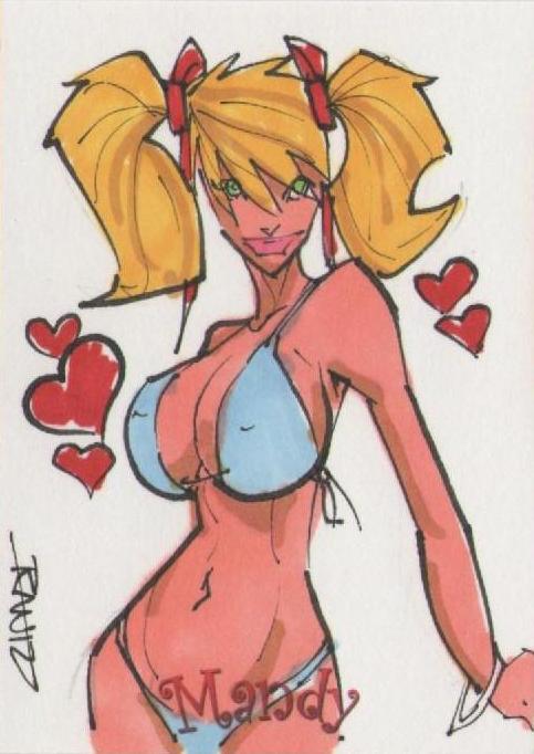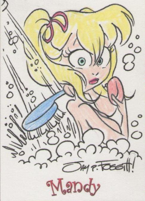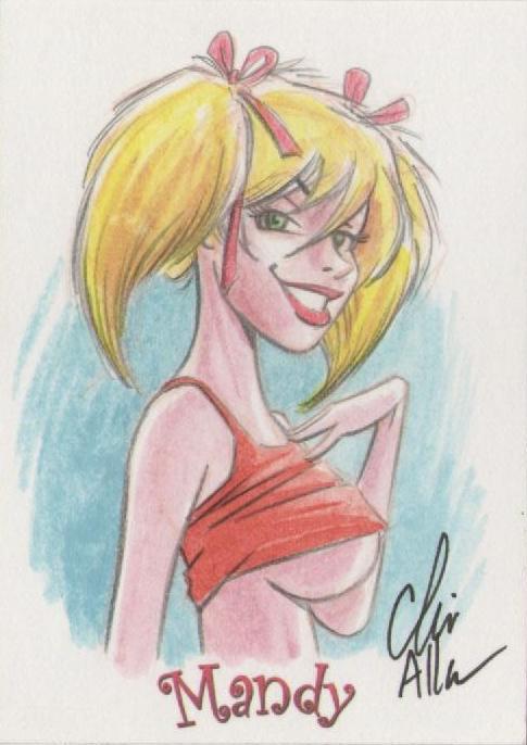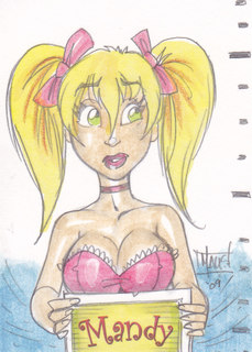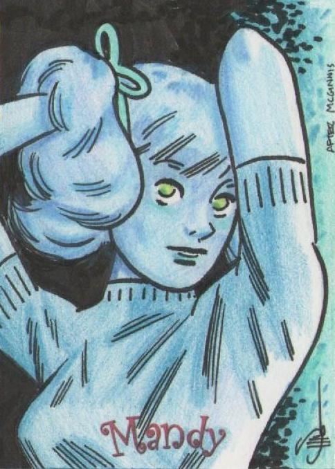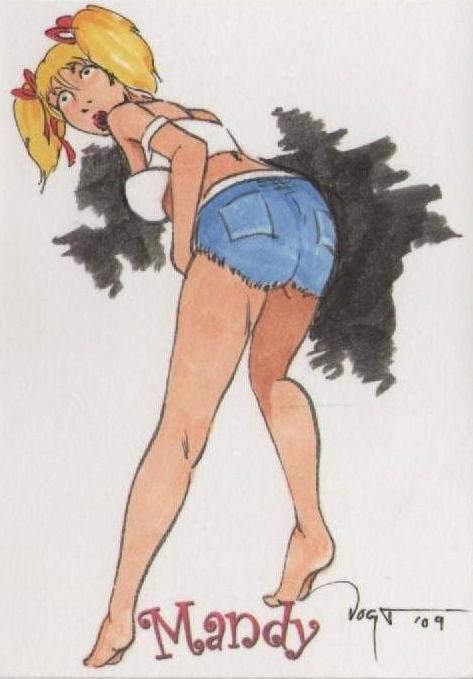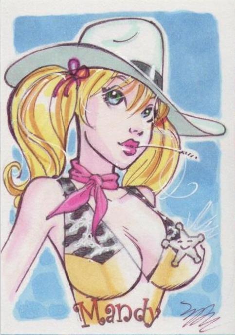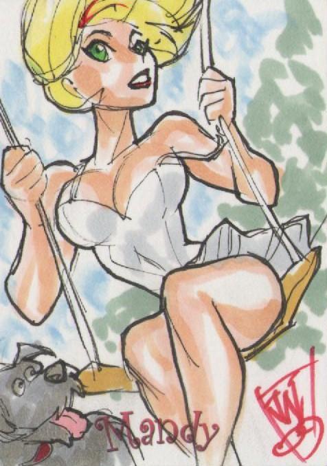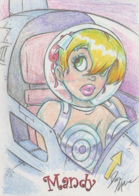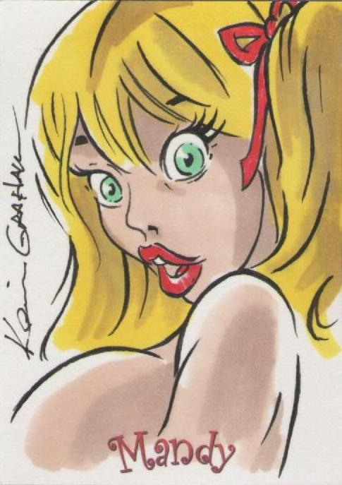 | |  Artist sketch cards based on the Playboy comic strip character, Mandy, created by Dean Yeagle. Limiteds to1,000 Serial Numbered Packs.