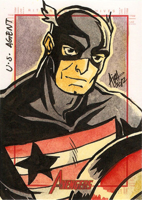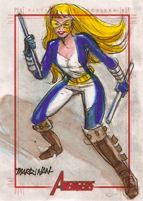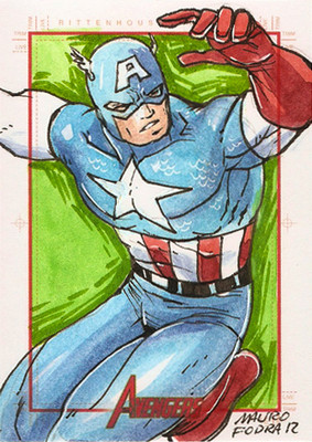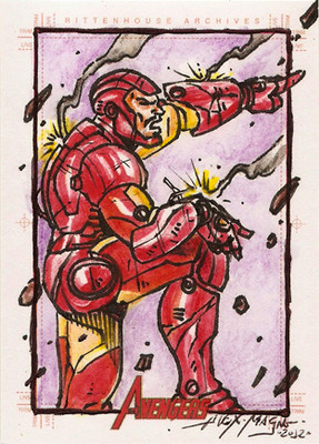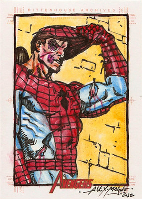 | 4 | Promo | | | 81 | Parallel | 1:3 | | 18 | Villians | 1:6 | | 18 | I Am An Avenger | 1:12 | | | Sketch | 1:24 | | 9 | Ultimate Heroes | 1:36 | | 6 | Icons | 1:72 | | 5 | Case Topper 5-Card Avengers Puzzle | 1:case | | 1 | 6-Case Incentive Painted Sketch Card by Mick Glebe or Matt Glebe | 1:6 case | | 1 | 9-Case Incentive Sketch Card by Warren Martineck, with each card featuring a key date and moment in Avengers history | 1:9 cases | | | 18-Case Incentive Archive Box A or B | 1:18 cases |