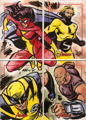 Case Topper: 5-Card Avengers Puzzle (1 card per case) 6-Case Incentive: Painted Sketch Card by Mick Glebe or Matt Glebe! 9-Case Incentive: Sketch Card by Warren Martineck, with each card featuring a key date and moment in Avengers history! 18-Case Incentive: Marvel: 2012 Greatest Heroes Archive Box! (Boxes A&B) Archive Box A includes: 81 Base Cards, 18 Villains Cards, and 6 Shadowbox Cards Archive Box B includes: 81 Parallel Cards, 18 I Am Avengers Cards, 9 Ultimate Heroes Cards, Random Selection of 10 Sketch Cards Plus 3 Puzzle Sketches and 5 Case Topper Cards. (Incentive Cards Not Included)