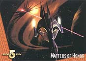 | |  An episode by episode synopsis of the third season of Babylon 5. Spectacular insert sets include 9 "The Coming of Shadows" (1:10) chronicling the appearances of the sinister Shadow ships, 10 "Creators Collection" (1:10) take you behind the scenes, 50 "B-5 Trivia" (1:2), 12 "Nightwatch" Posters (1:5), 2 laser-cut B5 Logo Cards (1:48). As an added bonus, J. Michael Straczynski, the creator, writer, producer of the show, will personally autograph 1,000 cards (1:960). Insert Cards| Qty | Name | Odds |
