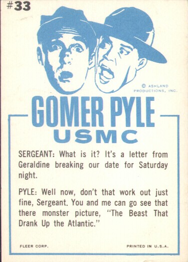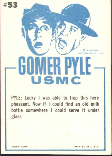 | |  Gomer Pyle, U.S.M.C. aired on CBS from September 25, 1964 to May 2, 1969, running for 5 seasons and 150 episodes. Gomer Pyle, played by Jim Nabors, was a spin off from his characters appearances on the Andy Griffith Show.