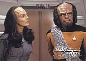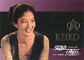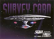 | |  A 108 card set highlighting the events and voyages of the starship USS Enterprise in its forth season on the air (1990-1191). Featuring never-before-seen digital imagery obtained from master archive sources: 2 special character profile subsets with detailed imagery and information about Geordi La Forgeand Wesley Crusher! A special nine-card mural celebrating the show's forth season; 6 randomly packed, foil-embossed cards (1:12) [S19 Klingon Communication, S20 Klingon Sash, S21 Klingon Food, S22 Soong, S23 Keiko, S24 Shelby]; 2 very limited, randomly inserted hologram cards (1:180) [HG7 Lt. Commander Geordi La Forge, HG8 Ensign Wesley Crusher]; 1 Cinema Collection and 1 Survey card.