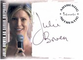 AUTOGRAPH CARDS - One per Box! Eleven cards signed by the stars of LOST (11 different cards - inserted approximately 1:36 packs). Yunjin Kim as Sun-Hwa Kwon, Neil Hopkins as Liam Pace, Julie Bowen as Sarah Shephard, Veronica Hamel as Margo Shephard, Andrea Gabriel as Nadia (Noor Abed Jaseem), Tamara Taylor as Susan Lloyd, Katey Sagal as Helen, Adetokumboh M’Cormack as Yemi, M.C. Gainey as Mr. Friendly, Dustin Watchman as Scott Jackson, Byron Chung as Mr. Paik