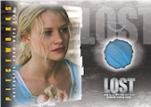 PIECEWORKS® CARDS - One per Box! Seven cards containing pieces of actual costumes worn on-screen during LOST (7 different cards - inserted approximately 1:36 packs). Shirt worn by Josh Holloway (Sawyer), Top worn by Emilie de Ravin (Claire), T-Shirt worn by Evangeline Lilly (Kate), Shirt worn by Matthew Fox (Jack), Shirt worn by Jorge Garcia (Hurley), T-Shirt worn by Cynthia Watros (Libby), Shirt worn by Harold Perrineau (Michael)