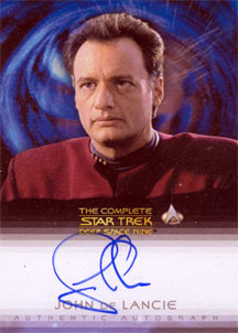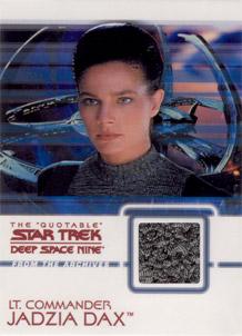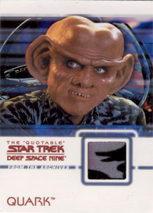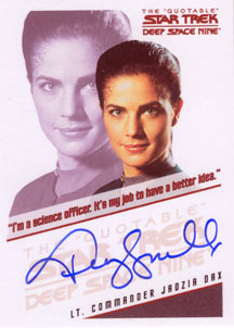 Each box of The Quotable Star Trek: Deep Space Nine comes with 1 autograph card and 2 costume cards! Cast signers include: Avery Brooks, Nana Visitor, Armin Shimerman, Terry Farrell and Rene Auberjonois on the "quotable" autograph design used in the previous two "The Quotable Star Trek" series. Also included are a bevy of guest star autographs on the fan favorite autograph card design seen in the The Complete Deep Space Nine set. These signers include