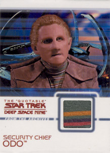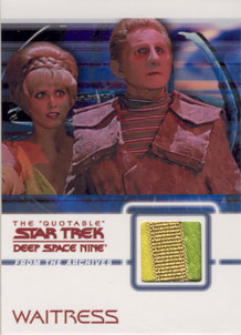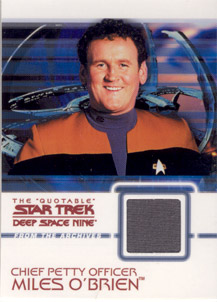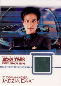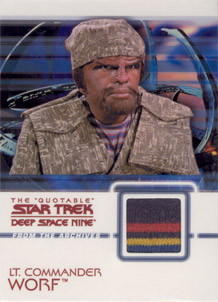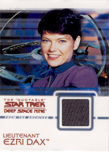 Rittenhouse Archives has also acquired authentic Star Trek: Deep Space Nine costumes to be used on over 20 different costume cards. Each staring cast member of the show is represented in this set. Also included will be two costume cards made from two different banners that hung on the Promenade set for all seven seasons!