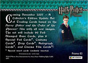 Artbox Entertainment is proud to present a new set of Harry Potter and the Order of the Phoenix Update trading cards. The set will include 90 foil stamp base cards, plus randomly inserted foil chase cards, costume cards, autographs, and more! Experience the magic of Harry Potter and the Order of the Phoenix