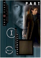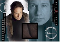 | 1 | Dual Autograph Featuring the autographs of David Duchovny as Mulder and Gillian Anderson as Scully | | | 2 | Parenters Puzzle Pieceworks® | | | 4 | Promo | | | 9 | In Search Of Nine card foil puzzle | 1:11 | | 6 | Wanting To Believe foil | 1:17 | | 9 | Autograph David Duchovny (Agent Fox Mulder), Gillian Anderson (Agent Dana Scully), Frank Spotnitz (Producer/Writer), Chris Carter (Director/Writer), Xzibit (Special Agent Drummy), Adam Godley (Father Ybarra), Chris Owens (The Great Mutato), Sheila Larken (Margaret Scully) and Nestor Serrano (Ken Naciamento) | 1:24 | | 3 | Back To Basics | 1:24 | | 13 | Pieceworks Cards featuring pieces of the actual costumes worn on-screen during the movie. | 1:24 | | 1 | Out Of Darkness | 1:case |