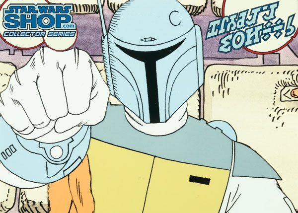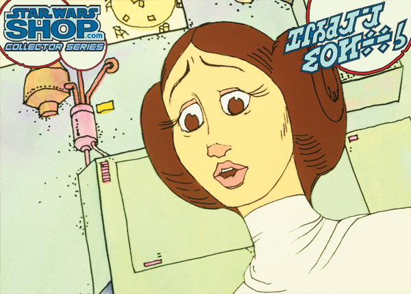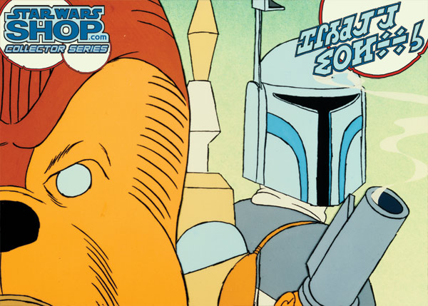 There are 11 cards total, with one card being randomly inserted in all StarWarsShop orders starting today. We scoured the Lucasfilm Archives to bring you 11 images from the animated segment that have never been published (as far as we know), so these are totally unique and original collectibles -- not to mention, there's not a lot of "The Star Wars Holiday Special" to go around collectibles-wise!