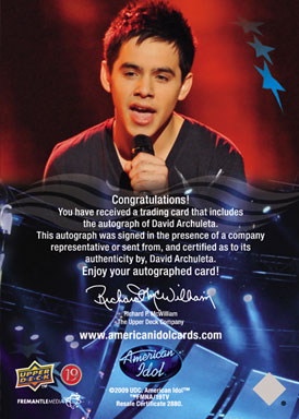 Randomly inserted autographs from Season 8 Finalists and past Idols including David Archuleta, Michael Johns and more!