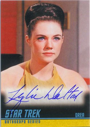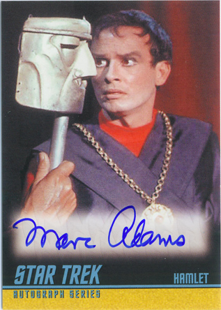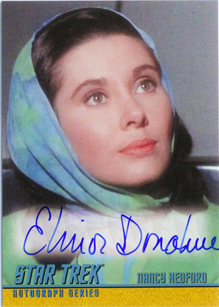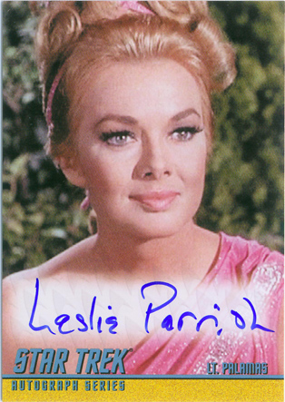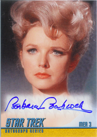 • William Shatner (Mirror Kirk) • Leonard Nimoy (Spock) • George Takei (Sulu in “The Naked Time”) • Sabrina Scharf (Miramanee in “The Paradise Syndrome”) • Skip Homeier (Dr. Sevrin in “The Way To Eden”) • Sheila Leighton (Luma in “Spock’s Brain”) • Roger Perry (Captain Christopher in “Tomorrow Is Yesterday”) • Sandra Smith (Janice Lester in “Turnabout Intruder”) • Shirley Bonne (Ruth in “Shore Leave”) • David Frankham (Larry Marvick in “Is There In Truth No Beauty?”) • Lezlie Dalton (Drea in “By Any Other Name”) • Barbara Babcock (Mea 3 in “A Taste of Armageddon”) • Elinor Donahue (Nancy Hedford in “Metamorphosis”) • William Wintersole (Abrom in “Patterns of Force”) • Susanne Wasson (Lethe in “Dagger of the Mind”) • Rex Holman (Morgan Earp in “Spectre of the Gun”) • many other first-time Star Trek: Original Series autograph card signers!