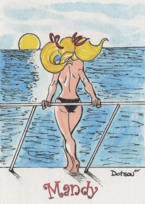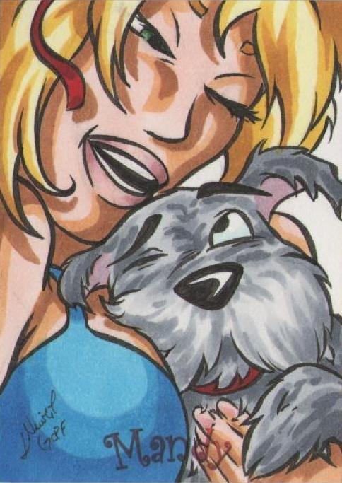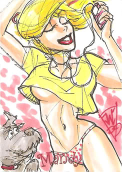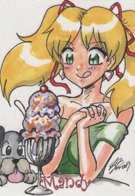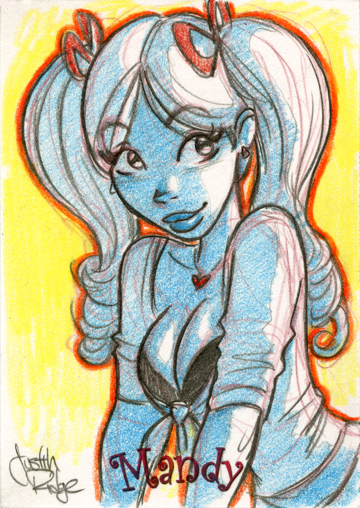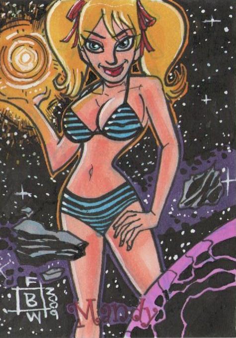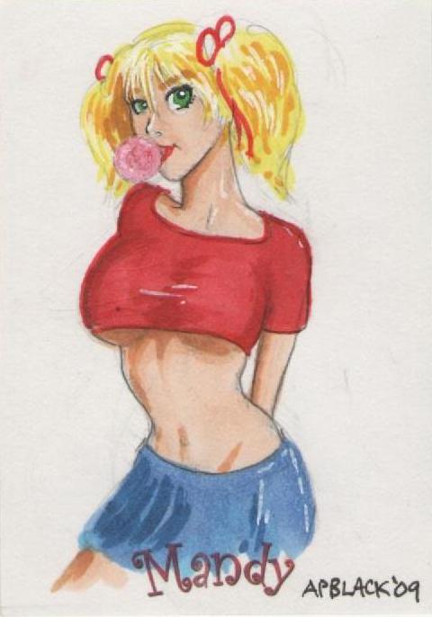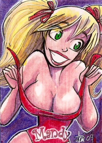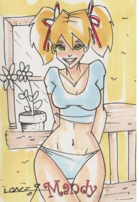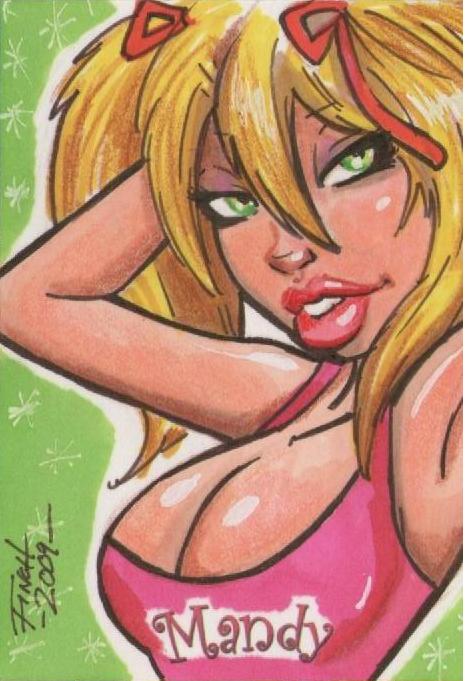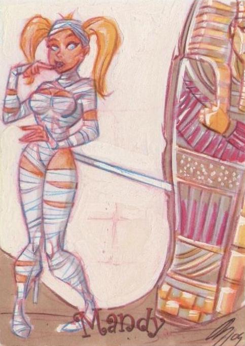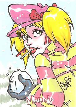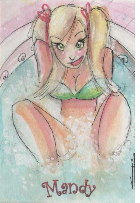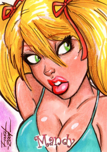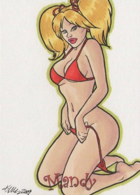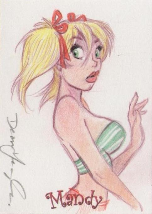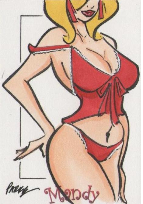 | |  Artist sketch cards based on the Playboy comic strip character, Mandy, created by Dean Yeagle. Limiteds to1,000 Serial Numbered Packs.
