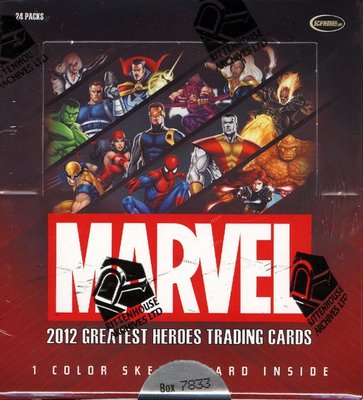 Case Topper: 5-Card Avengers Puzzle (1 card per case) 6-Case Incentive: Painted Sketch Card by Mick Glebe or Matt Glebe! 9-Case Incentive: Sketch Card by Warren Martineck, with each card featuring a key date and moment in Avengers history! 18-Case Incentive: Marvel: 2012 Greatest Heroes Archive Box! (Boxes A&B) Archive Box A includes: 81 Base Cards, 18 Villains Cards, and 6 Shadowbox Cards Archive Box B includes: 81 Parallel Cards, 18 I Am Avengers Cards, 9 Ultimate Heroes Cards, Random Selection of 10 Sketch Cards Plus 3 Puzzle Sketches and 5 Case Topper Cards. (Incentive Cards Not Included)