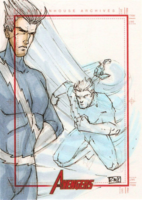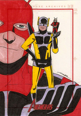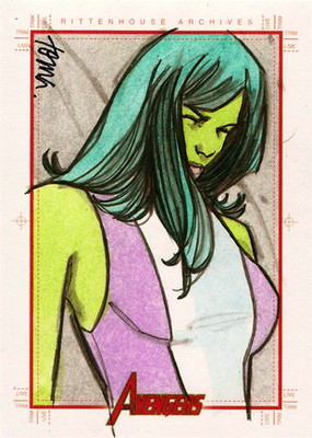 | 4 | Promo | | | 81 | Parallel | 1:3 | | 18 | Villians | 1:6 | | 18 | I Am An Avenger | 1:12 | | | Sketch | 1:24 | | 9 | Ultimate Heroes | 1:36 | | 6 | Icons | 1:72 | | 5 | Case Topper 5-Card Avengers Puzzle | 1:case | | 1 | 6-Case Incentive Painted Sketch Card by Mick Glebe or Matt Glebe | 1:6 case | | 1 | 9-Case Incentive Sketch Card by Warren Martineck, with each card featuring a key date and moment in Avengers history | 1:9 cases | | | 18-Case Incentive Archive Box A or B | 1:18 cases |